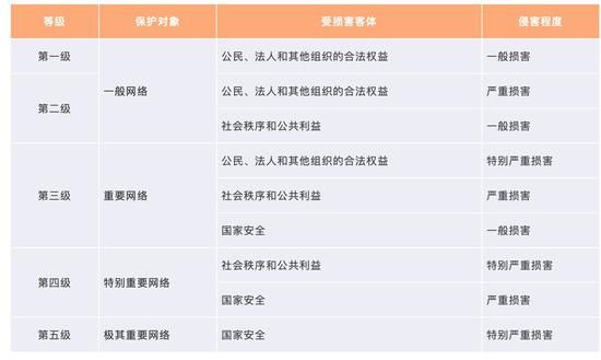 网络安全等级保护制度作为我国现行网络安全领域的一项重要制度,是指根据保护对象、受损害客体与侵害程度将网络系统分为五级,并针对第一级到第五级的网络系统等级对象按照标准进行建设、管理和监督的制度体系。涉及网络安全等级划分的概念可参照下图。