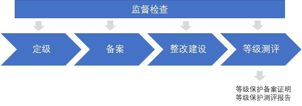 等级保护实施过程一般包括系统定级、系统备案、整改建设、等级测评和监督检查五项工作。