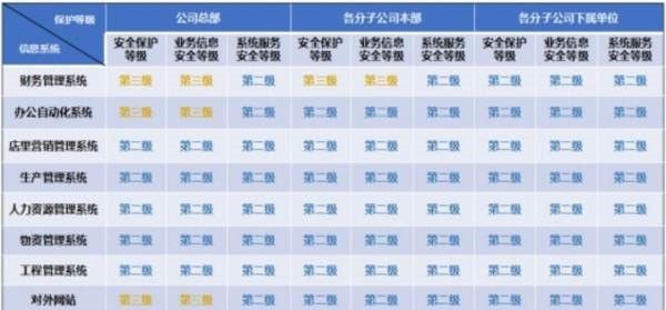 示例可见下图-电力行业信息系统安全等级保护定级建议: