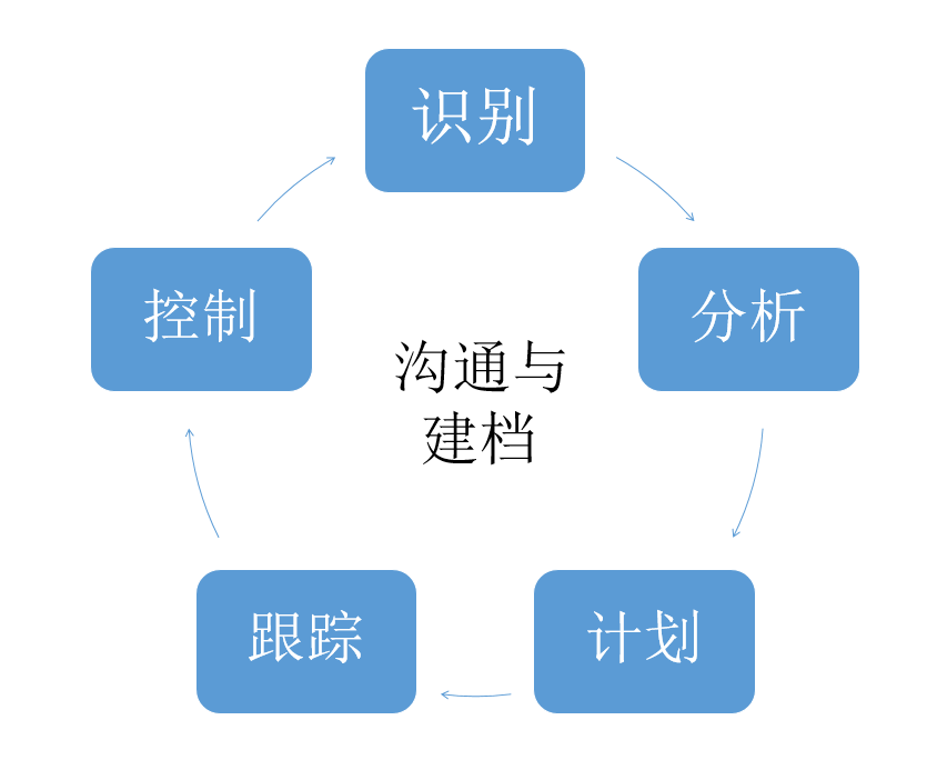 上述几项工作都需要建档,并在各个部门之间沟通和交流。将沟通放在上图中心的位置就是为了凸显其重要性及无处不在性。如果没有有效的沟通,任何风险管理方法都是没用的。必须建立档案管理系统,并对风险决策进行沟通。