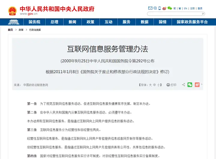 依据国务院《互联网信息服务管理办法》第四条规定:国家对经营性互联网信息服务实行许可制度;对非经营性互联网信息服务实行备案制度。未取得许可或者未履行备案手续的,不得从事互联网信息服务。及第八条规定:从事非经营性互联网信息服务,应当向省、自治区、直辖市电信管理机构或者国务院信息产业主管部门办理备案手续。