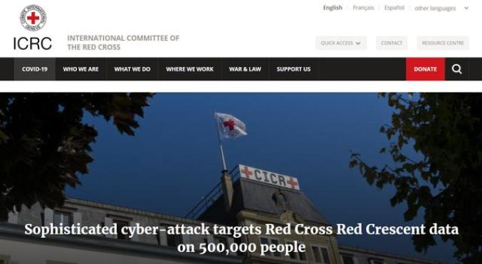 1月,红十字国际委员会(ICRC)发布公告表示其遭受到针对托管信息的计算机服务器的复杂网络安全攻击,造成超515,000名高度脆弱人群的个人数据和机密信息被黑。红十字会表示,这一事件与勒索软件无关。