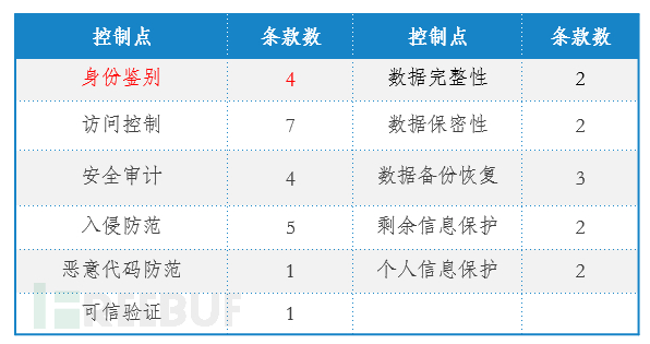 安全通用要求——安全计算环境(第三级)这一安全类共包括11个控制点,每个控制点包含的条款数如下表。