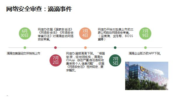 2021年7月2日,网络安全审查办公室发布公告,称为防范国家数据安全风险,依据《中华人民共和国国家安全法》《中华人民共和国网络安全法》,对“滴滴出行”实行网络安全审查。6月30日,滴滴在美股悄无声息的上市,随后的事情大家都知道了,一番疾风暴雨的组合拳砸向了滴滴。掌握超过100万用户个人信息的运营者赴国外上市,必须向网络安全审查办公室申报网络安全审查。