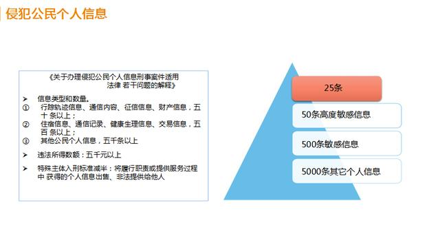 对于侵犯个人隐私数据的类型和数量也有明确的定义,我们需要将数据安全提升到企业发展的战略高度,否则将会不小心触及政策红线带来不必要的后果,对于侵犯个人隐私数据的数量也有明确的要求: